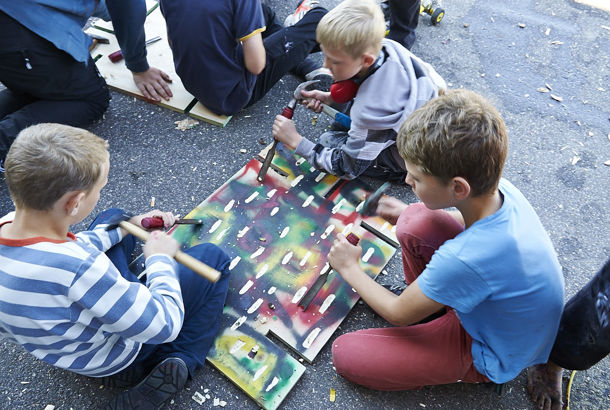 Min tilgang er at udvikle et kunstforløb i tæt samarbejde med skole eller institution og lade hvert forløb være unik og udvikle sig gennem forløbet, så dem jeg afholder arbejder med med, kan mærke kunsten og gerne få en forunderlig oplevelse, der skaber aftryk i den enkelte deltager. Børn vil opleve en engageret kunstner med mange kreative og kunstneriske udtryksformer på lager, der til enhver tid vil komme i spil under et forløb. Forløbet bliver et indblik og en berøring med den kunstneriske verden og den specielle vinkel, der ligger i springet fra den gode billedundervisning i skolen til det forunderlige forløb, der også kan motivere eventuelle undervisere til at gå videre med endnu mere inspiration i undervisningen. Konkret kan der arbejdes i malerier, tryk (træsnit og linoleum), metalplader, skulpturer, foto etc. I mine forløb ønsker jeg, at børnene oplever, at kunsten formes gennem alt andet end en færdig skabelon. Børnene kan fx opleve, at jeg vender en situation på hovedet i selve forløbet, hvis det viser sig at være hensigtsmæssigt i forhold til at åbne for børnenes egne evner. Min tilgang til et forløb er at være grundigt forberedt, at sætte forløbet i gang uden at fortælle for meget om hvad vi skal og afsluttende snakke om, hvad det var vi gjorde og oplevede. Undervejs dokumenterer jeg forløbet på foto og video.