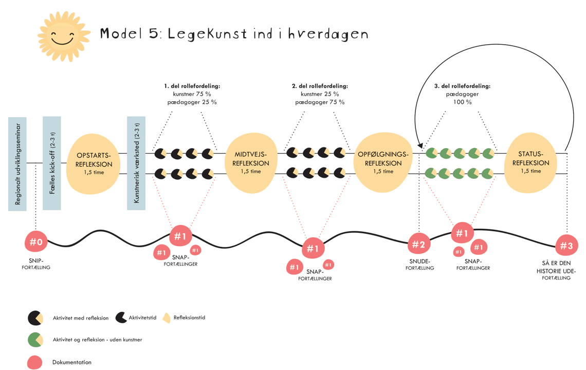• børnene sammen med deres ”hverdagsvoksne” og kunstnere skaber legende, inddragende og forunderlige forløb hjemme i deres institution